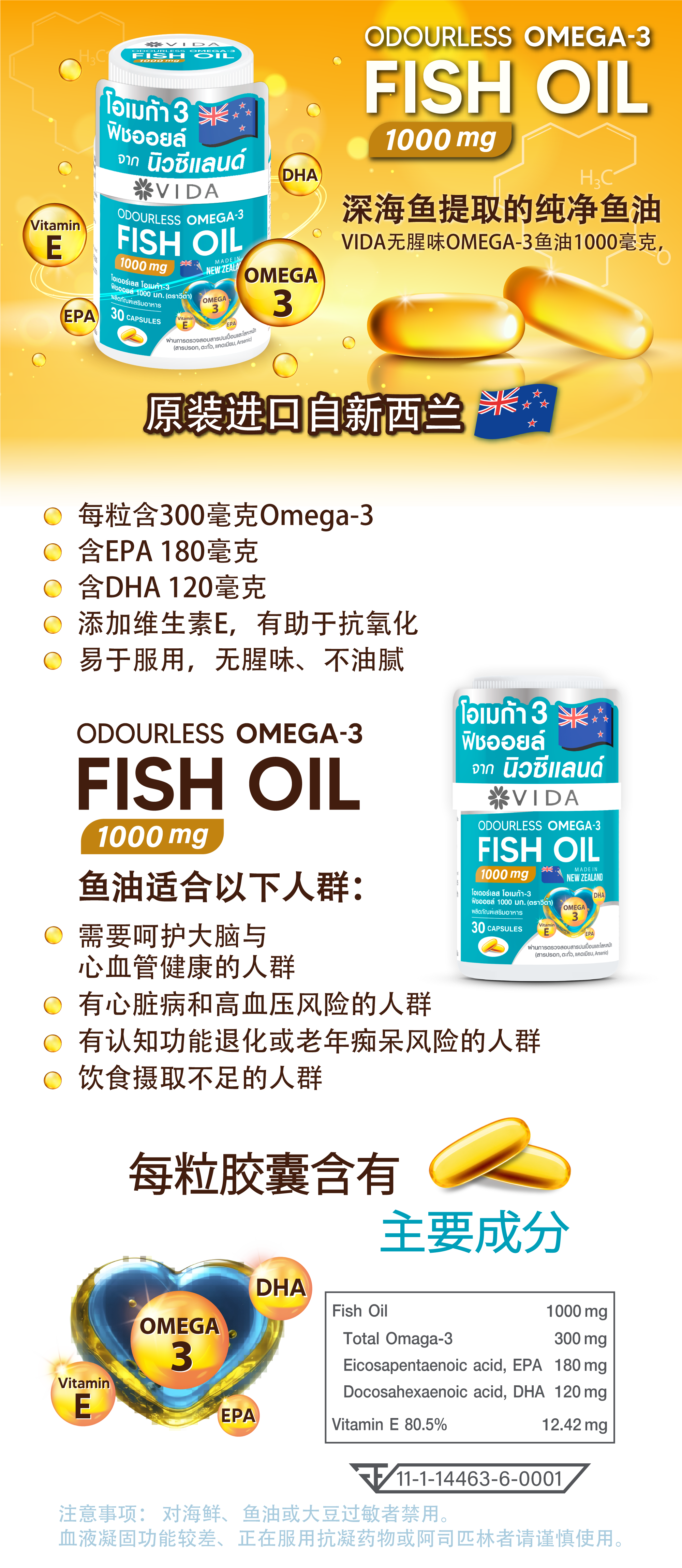 VIDA Odourless Omega-3 Fish Oil 1000 mg