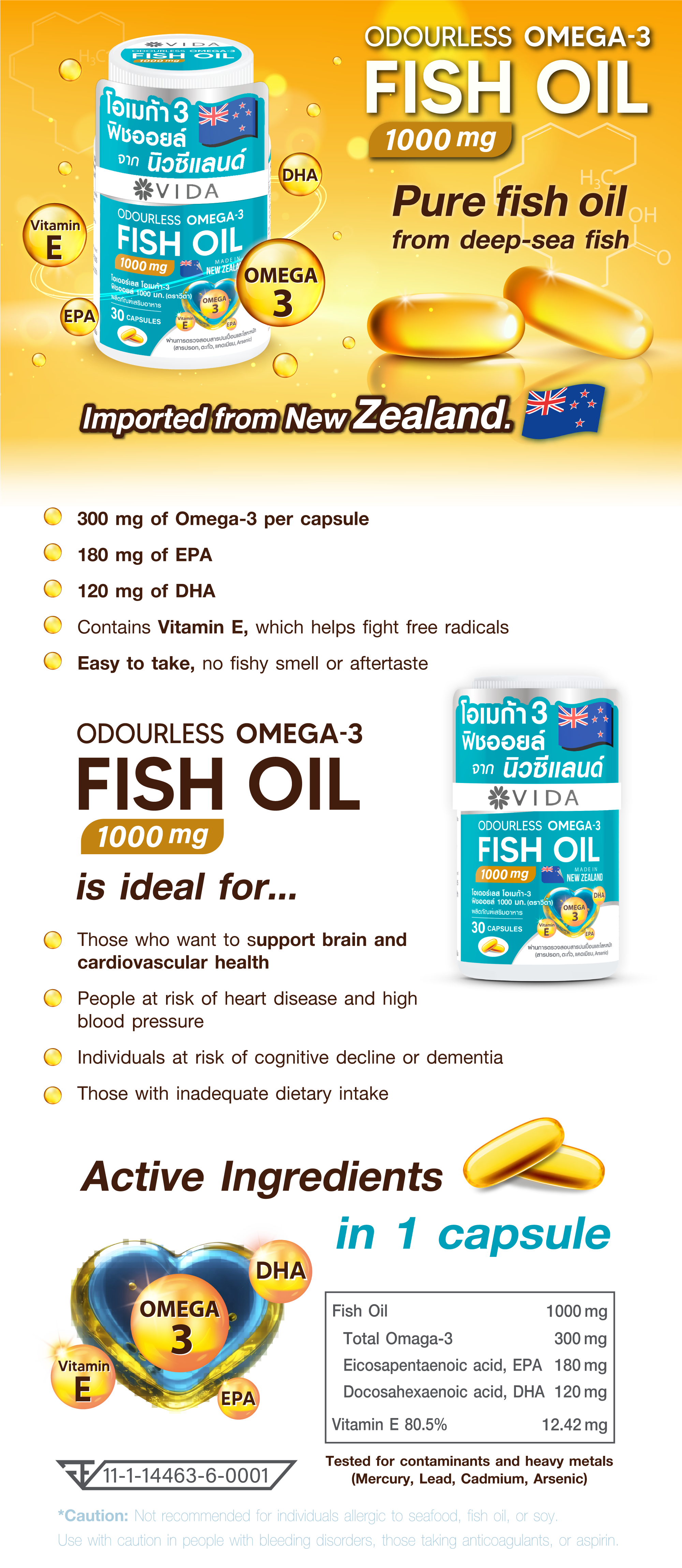 VIDA Odourless Omega-3 Fish Oil 1000 mg